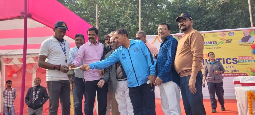 एथलेटिक्स फेडरेशन ऑफ इंडिया के निर्देश पर जिला एथलेटिक्स एसोसिएशन द्वारा रविवार को जिला मुख्यालय स्थित आउटडोर स्टेडियम में अस्मिता खेलो इंडिया एथलेटिक्स लीग 2025 का आयोजन किया गया। बालिकाओं को एथलेटिक्स के क्षेत्र में बेहतर मंच उपलब्ध कराने और खेल के प्रति बढ़ते रुझान को नई दिशा देने के उद्देश्य से आयोजित इस एक दिवसीय प्रतियोगिता ने जिले में एक नई पहचान बनाई। प्रतियोगिता का शुभारंभ नगर परिषद के मुख्य पार्षद सह जिला क्रिकेट एसोसिएशन के अध्यक्ष राघवेन्द्र झा राघव ने झंडोतोलन तथा मशाल प्रज्वलित कर किया। इसके बाद प्रतिभागी बालिकाओं ने आकर्षक मार्च पास्ट प्रस्तुत किया, जिसने पूरे वातावरण को ऊर्जावान और उत्साहपूर्ण बना दिया। उद्घाटन के दौरान बड़ी संख्या में खेलप्रेमी और जिले के विभिन्न खेल संगठनों से जुड़े पदाधिकारी उपस्थित रहे. प्रतियोगिता में अंडर 14 और अंडर 16 आयु वर्ग की करीब 200 बालिकाओं ने भाग लिया, जो जिले में खेल के प्रति बढ़ती रुचि का प्रमाण है। मैदान में हर इवेंट के दौरान बालिकाओं की प्रतिभा और जोश देखते बनता था। एथलेटिक्स फेडरेशन ऑफ इंडिया द्वारा नियुक्त ऑब्जर्वर रामरतन सिंह भी पूरे समय मौजूद रहे, जिन्होंने प्रतियोगिता के संचालन, नियमों के अनुपालन और खिलाड़ियों के प्रदर्शन की निगरानी की. प्रतियोगिता के दौरान जिले के कई खेल प्रेमी और अधिकारी उपस्थित रहे। इसमें डॉ. विजय शंकर चौधरी डॉ. शांति भूषण, जयकृष्ण झा, डॉ. विश्वनाथ सराफ , धनंजय कुमार मिश्र, अशोक कुमार यादव, अभय शंकर झा, चंद्रशिखा प्रसाद सिंह, दीपिका चंद्रा, विश्व विजय, नयन नाथ झा, दिनेश कुमार, रंजीत कुमार, शेख अब्दुल्ला, शोएब अख्तर, जय शंकर प्रसाद, मो. जुब्राईल, राजेश कुमार, मंटू कुमार, जयशंकर प्रसाद आदि शामिल हैं।