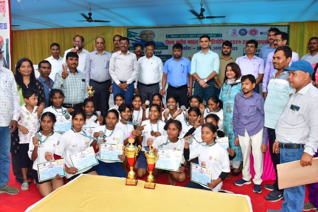 जिला खेल कार्यालय, भागलपुर के तत्वावधान में आयोजित जिला स्तरीय मशाल खेल प्रतियोगिता शनिवार को संपन्न हो गई। इस प्रतियोगिता में वॉलीबॉल, कबड्डी और फुटबॉल के फाइनल मुकाबले खेले गए, जिसमें खिलाड़ियों ने शानदार खेल कौशल का प्रदर्शन किया।