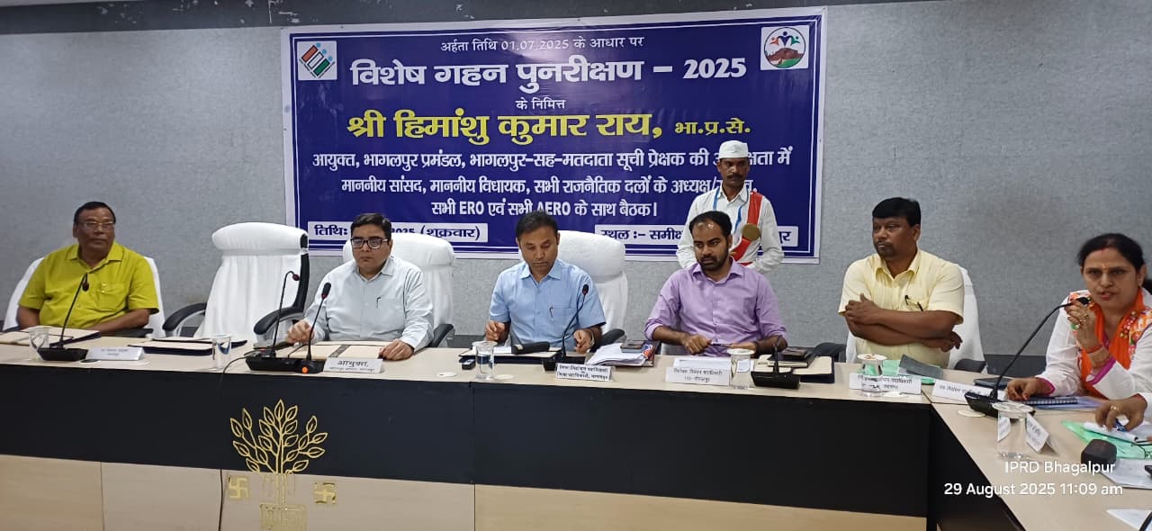 समाहरणालय स्थित समीक्षा भवन में विशेष गहन पुनरीक्षण 2025 की समीक्षा बैठक आयोजित की गई, जिसकी अध्यक्षता प्रमंडलीय आयुक्त-सह-मतदाता सूची प्रेक्षक हिमांशु कुमार राय ने की। बैठक में विभिन्न राजनीतिक दलों के प्रतिनिधि भी उपस्थित रहे।