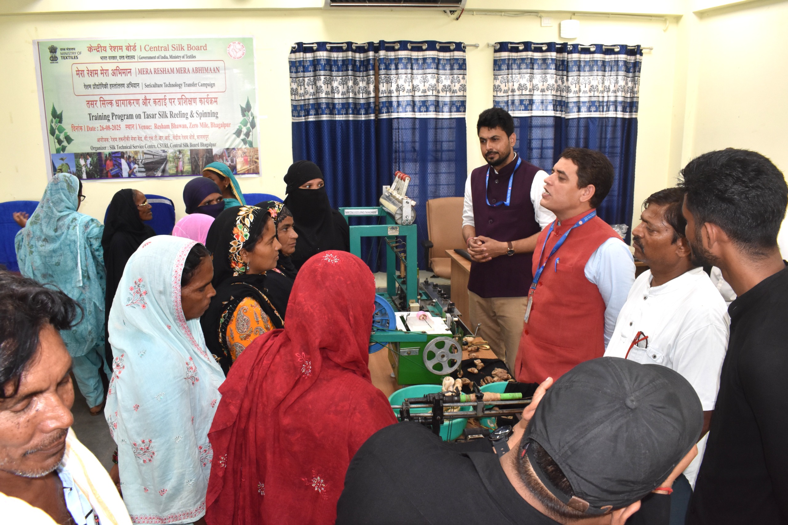 केंद्रीय रेशम बोर्ड एवं सीएसटीआरआई के सहयोग से रेशम तकनीकी सेवा केंद्र, भागलपुर द्वारा ‘मेरा रेशम मेरा अभिमान’ अभियान के अंतर्गत तसर रेशम रीलिंग एवं कताई पर एक दिवसीय प्रशिक्षण कार्यक्रम रेशम भवन, जीरो माइल, भागलपुर में आयोजित किया गया।