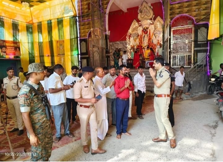 वरीय पुलिस अधीक्षक हृदय कांत ने बुधवार को शहर के विभिन्न थाना क्षेत्रों में स्थित काली मंदिरों का निरीक्षण कर सुरक्षा व्यवस्था का जायजा लिया। इस दौरान उन्होंने संबंधित थाना प्रभारियों और शांति समिति के सदस्यों के साथ बैठक कर मूर्ति विसर्जन से जुड़े दिशा-निर्देश दिए। एसएसपी ने कहा कि काली पूजा शांतिपूर्ण ढंग से संपन्न कराना प्रशासन की प्राथमिकता है। उन्होंने समिति सदस्यों से आग्रह किया कि सभी पूजा पंडालों से समय पर मूर्तियों का विसर्जन सुनिश्चित करें ताकि किसी प्रकार की अव्यवस्था न हो। साथ ही, उन्होंने मूर्ति विसर्जन की रूट और समय का पालन करने की अपील की। पुलिस अधिकारियों को निर्देशित किया गया कि सभी संवेदनशील स्थानों पर पर्याप्त संख्या में पुलिस बल की तैनाती की जाए और सीसीटीवी कैमरों की मदद से निगरानी रखी जाए। एसएसपी ने आम जनता से भी सहयोग की अपील करते हुए कहा कि कोई भी अफवाह फैलाने की कोशिश करे तो तुरंत पुलिस को सूचित करें। इस दौरान स्थानीय प्रशासन के साथ-साथ भारी संख्या में महिला एवं पुरुष बल मौजूद थे।
