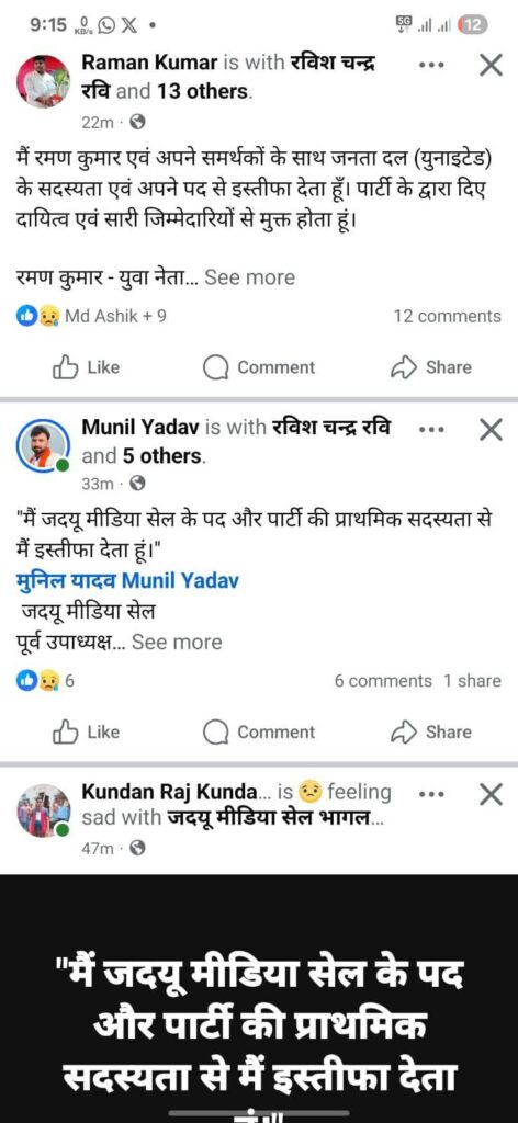 यह इस्तीफा केवल पद छोड़ना नहीं है, बल्कि जदयू के भीतर मची गुटबाज़ी और नेताओं की मनमानी के खिलाफ सीधा विद्रोह है।