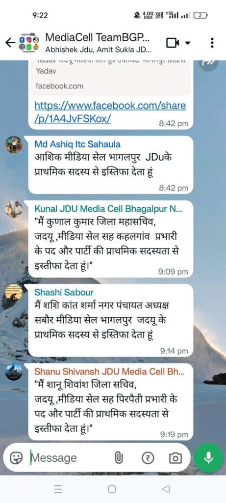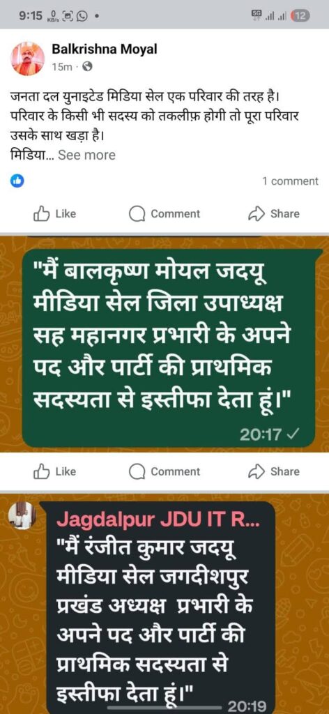 जदयू मीडिया सेल के सभी पदाधिकारियों ने सामूहिक इस्तीफा देकर संगठन की पोल खोल दी है।