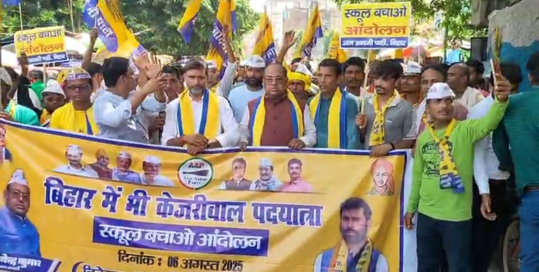 शिक्षा व्यवस्था की बदहाली और सरकारी स्कूलों की गिरती हालत के खिलाफ आम आदमी पार्टी (AAP) ने बुधवार को एक ज़ोरदार पदयात्रा निकाली। ‘स्कूल बचाओ आंदोलन’ के तहत निकाली गई इस पदयात्रा में AAP नेताओं और कार्यकर्ताओं ने दिल्ली मॉडल को बिहार में लागू करने की मांग की।