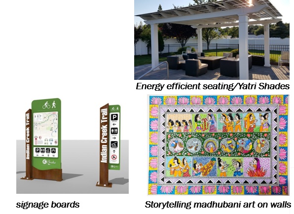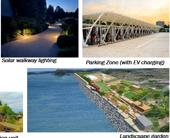 - पथ, इको-लाइटिंग और बैठने की जगह