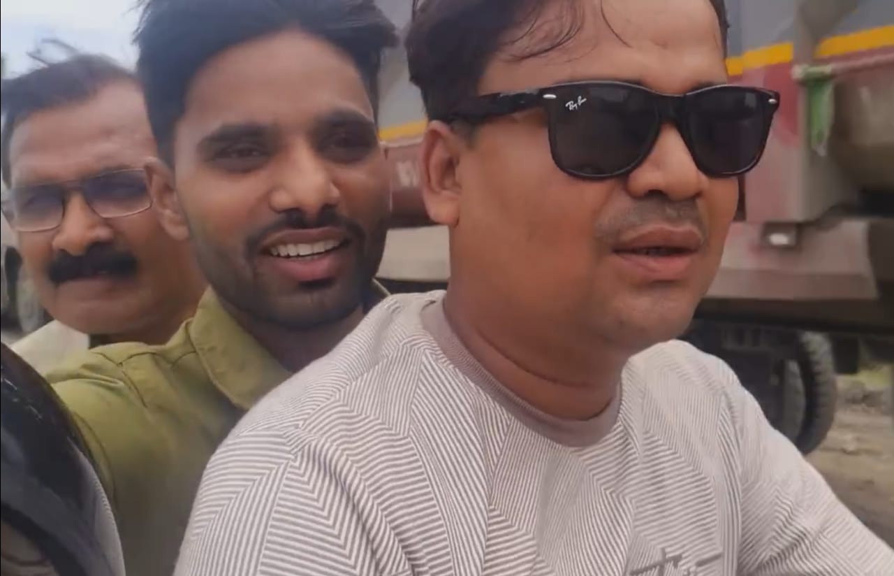 युवक चंदन पांडे बाइक चला रहे थे, बीच में उनके दोस्त अमन कुमार, और पीछे… खुद विधायक जी। तीनों सिर पर हेलमेट नहीं, लेकिन सवालों की बौछार तैयार।