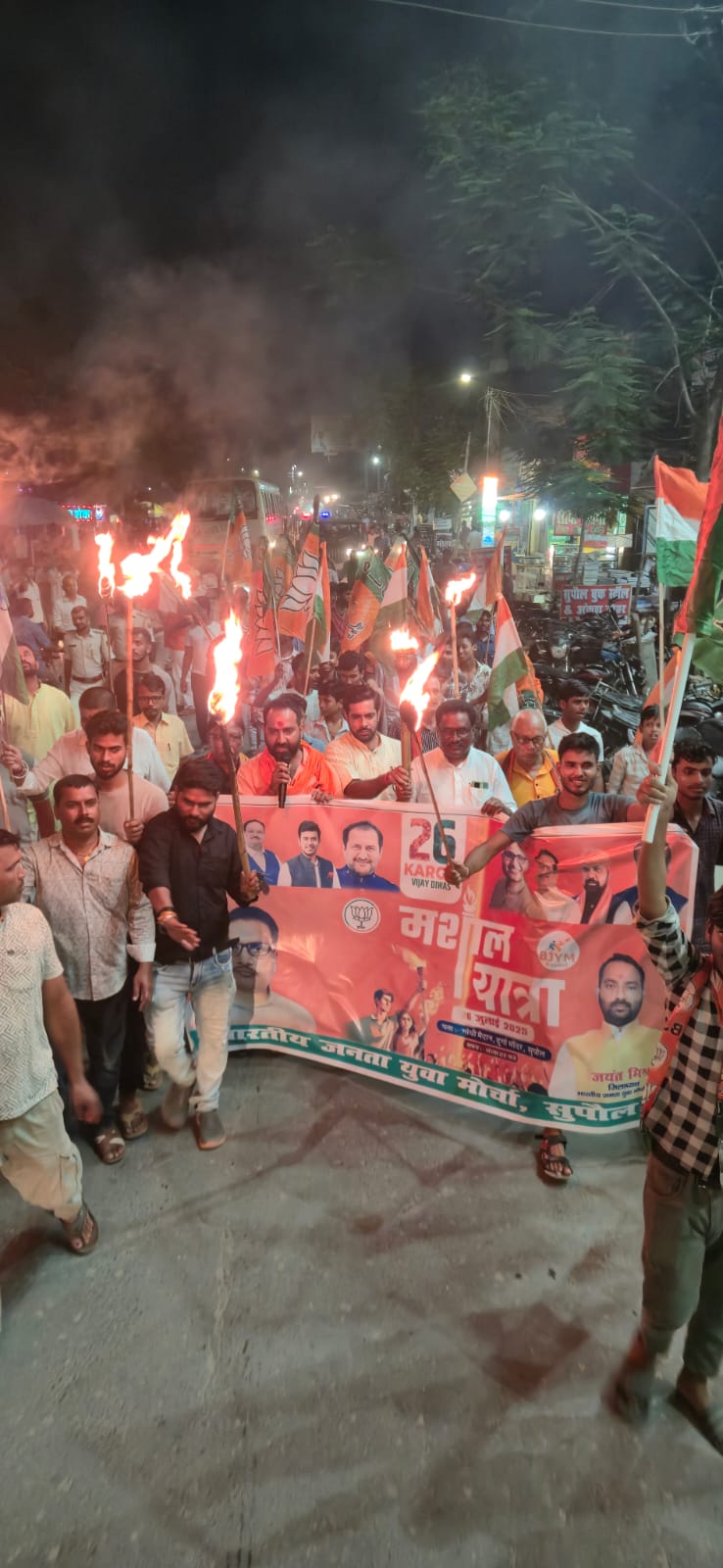 कारगिल विजय दिवस की 26वीं वर्षगांठ के अवसर पर शनिवार देर शाम भारतीय जनता युवा मोर्चा (भाजयुमो) के द्वारा गांधी मैदान दुर्गा मंदिर, सुपौल से मशाल यात्रा निकाली गई। मशाल यात्रा का नेतृत्व भाजयुमो जिलाध्यक्ष जयंत मिश्रा ने किया।