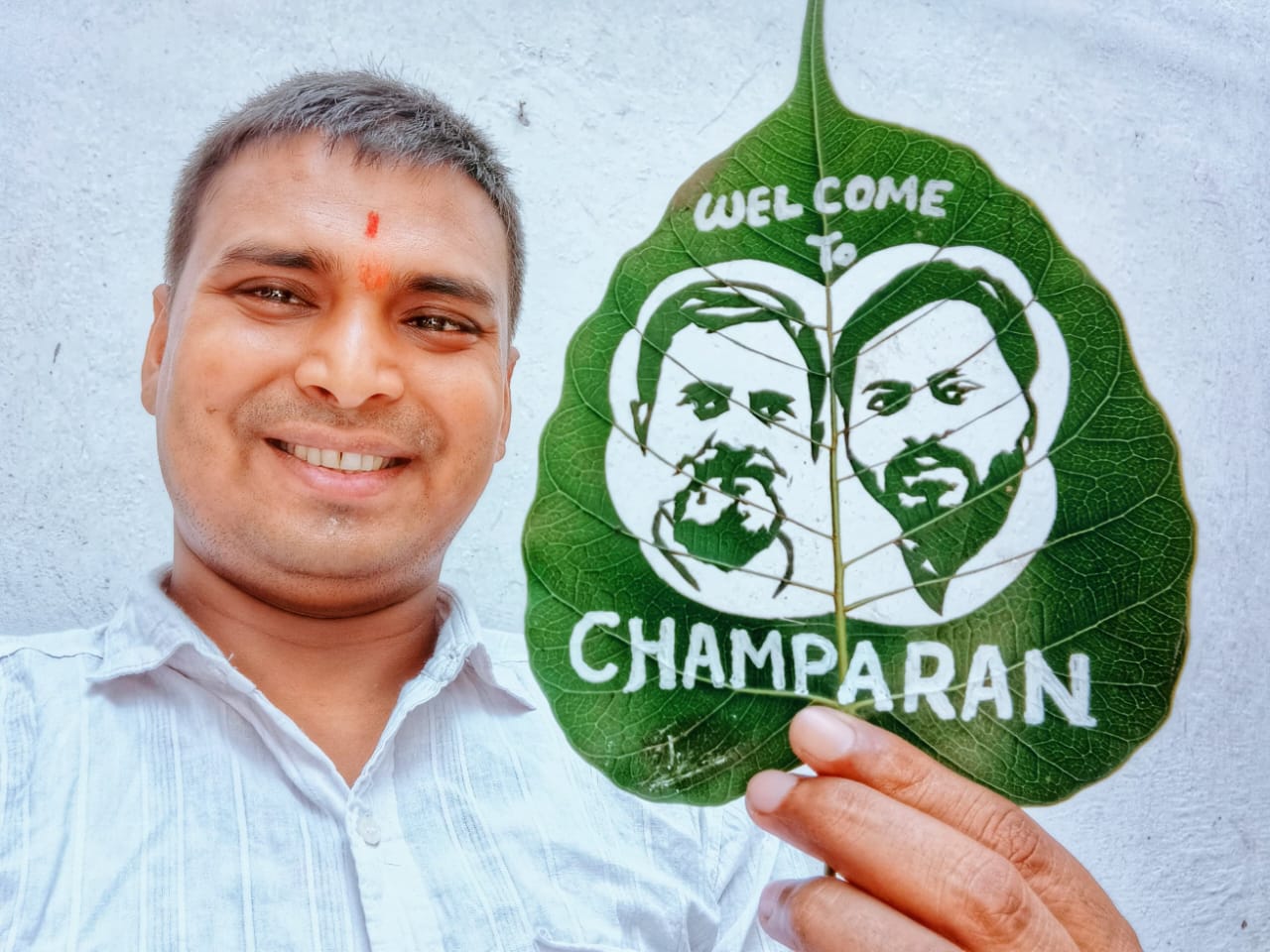 पत्ते के नीचे लिखा गया – “Welcome to Champaran” और साथ ही लिखा गया बिहार के कलाकारों का अदृश्य संदेश – “कला बोलती है, राजनीति सुनती है।”