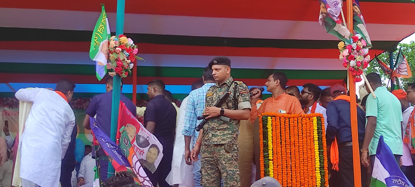 फारबिसगंज के मिथिला पब्लिक स्कूल के खेल के मैदान में गुरुवार को आयोजित एनडीए कार्यकर्ता सम्मेलन के दौरान मंच पर उस दिन अफरातफरी का माहौल पैदा हो गया।जब मंच पर सूबे के डिप्टी सीएम सम्राट चौधरी हेलीपैड से मंच पर पधारे।डिप्टी सीएम के मंच पर आते ही मंच पर अफरातफरी का माहौल पैदा हो गया। डिप्टी सीएम के साथ फोटो खिंचवाने और सम्मानित करने के लिए सैकड़ों की संख्या में मंच पर एनडीए के कार्यकर्ता जमा हो गए।मंच की सुरक्षा पूरी तरह ध्वस्त हो गई। जबकि मंच का संचालन कर रहे भाजपा जिलाध्यक्ष आदित्य नारायण झा बार बार कार्यकर्ताओं से मंच को खाली करने का गुहार लगाते रहे।आधा से एक घंटा तक मंच पर अफरातफरी का माहौल रहा।
