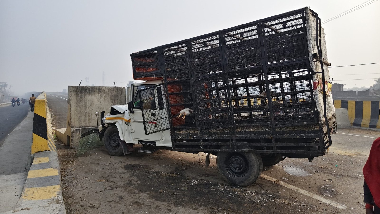 राघोपुर थाना क्षेत्र में निर्माणाधीन रेलवे ओवरब्रिज पर सोमवार सुबह एक बड़ा हादसा होते-होते टल गया। गनपतगंज से सिमराही की ओर जा रही तेज रफ्तार मुर्गा लदी पिकअप वैन अनियंत्रित होकर ओवरब्रिज निर्माण कार्य के दौरान लगाए गए डिवाइडर से जा टकराई। टक्कर इतनी जोरदार थी कि आसपास के लोगों ने धमाके जैसी आवाज सुनी और मौके पर अफरातफरी मच गई।