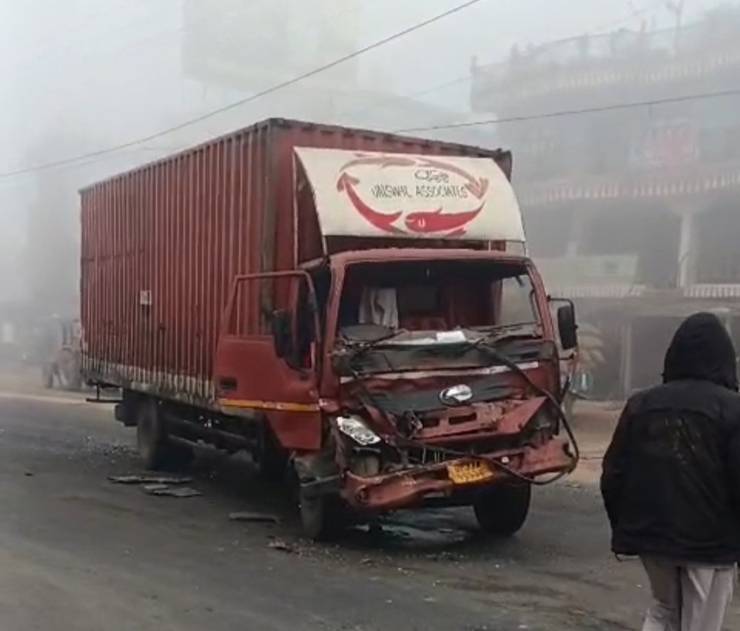 कुहासा बना हादसे की वजह, जेपी चौक पर दो ट्रक आपस में टकराई