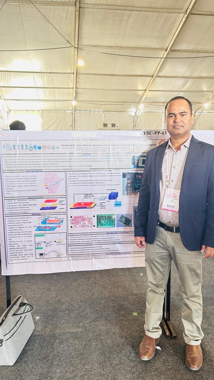 IISF-2025 के अंतर्गत आयोजित यंग साइंटिस्ट कॉन्फ्रेंस में डॉ. चन्दन कुमार ने अपने शोध कार्य हैंडहेल्ड सेंसर डिवाइस की प्रस्तुति दी, जिसे वैज्ञानिक समुदाय द्वारा अत्यंत सराहा गया। उनका यह शोध कार्य विज्ञान एवं प्रौद्योगिकी के क्षेत्र में उपयोगी, किफायती और भविष्य की आवश्यकताओं के अनुरूप बताया गया। प्रस्तुति के दौरान देशभर से आए वरिष्ठ वैज्ञानिकों, प्रोफेसरों, उद्योग विशेषज्ञों एवं शोधार्थियों ने डॉ. कुमार से विस्तृत चर्चा की और उनके प्रयासों की प्रशंसा की।