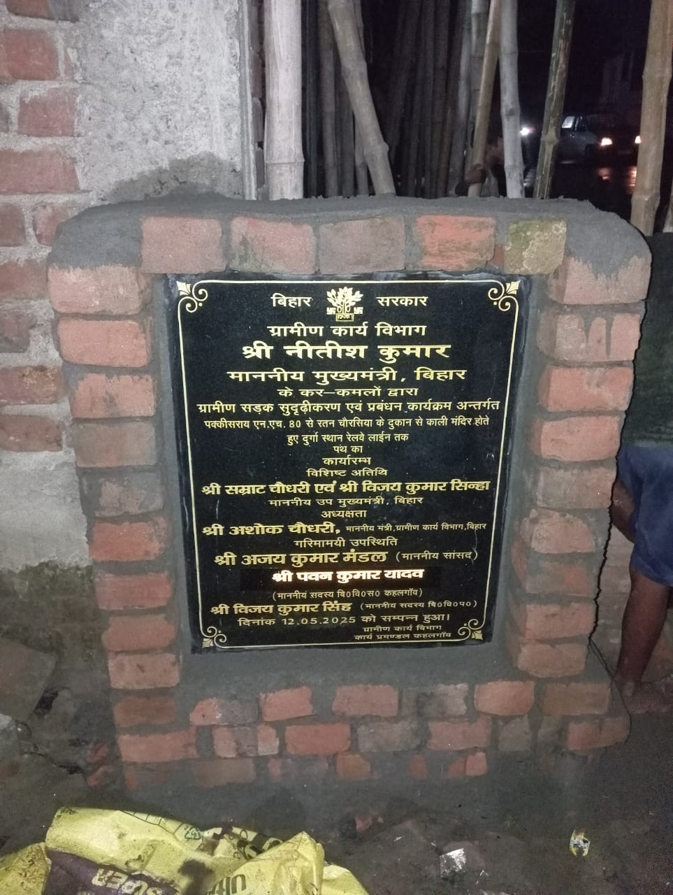 घोघा थाना क्षेत्र के पक्कीसराय गांव में ग्रामीण कार्य विभाग की बड़ी लापरवाही उजागर हुई है। बिना सड़क बने ही विभाग ने सड़क निर्माण पूरा होने का शिलापट लगा दिया। इस फर्जीवाड़े से गुस्साए ग्रामीणों ने शनिवार शाम NH-80 को करीब ढाई घंटे तक जाम कर दिया।
