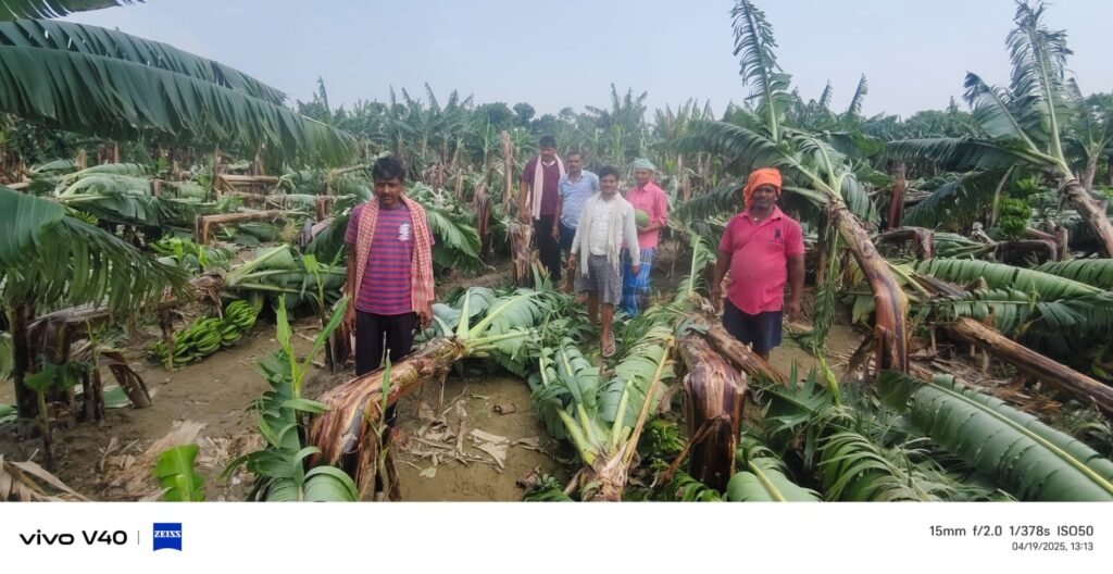 19 अप्रैल 2025 को परबत्ता में आए तुफान के बाद नष्ट हुई केले की फसल।(पुरानी तस्वीर)