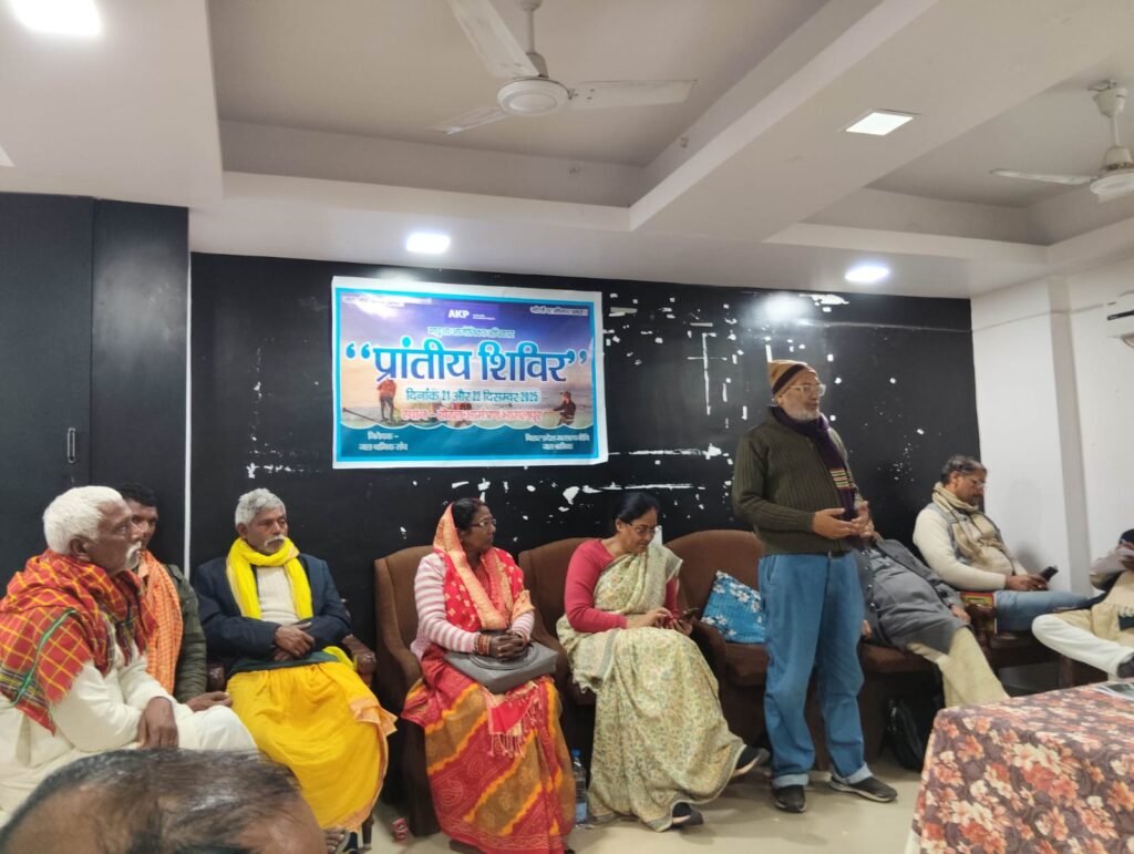 मछुआ समुदाय की आजीविका, जलवायु संकट और नदियों के भविष्य पर केंद्रित “मछुआ आजीविका अधिकार प्रांतीय शिविर” का समापन रविवार, 22 दिसंबर 2025 को हुआ। कार्यक्रम का आयोजन जल श्रमिक संघ एवं बिहार प्रदेश मत्स्यजीवी जल श्रमिक संघ के संयुक्त तत्वावधान में होटल आमंत्रण, सूजागंज में किया गया।