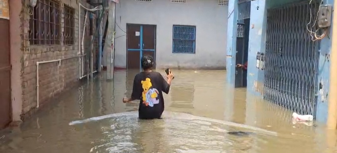 भागलपुर में बाढ़ का कहर अब शहर तक पहुंच चुका है। नया बाजार, दीपनगर, बैंक कॉलोनी सहित कई इलाकों में पानी भर गया है। घरों और गलियों में पानी घुसने से लोग घरों में कैद हो गए हैं। सड़कों पर आवाजाही बंद है और पानी का स्तर लगातार बढ़ रहा है। प्रशासन राहत और निगरानी का दावा कर रहा है, लेकिन लोग दहशत में हैं।