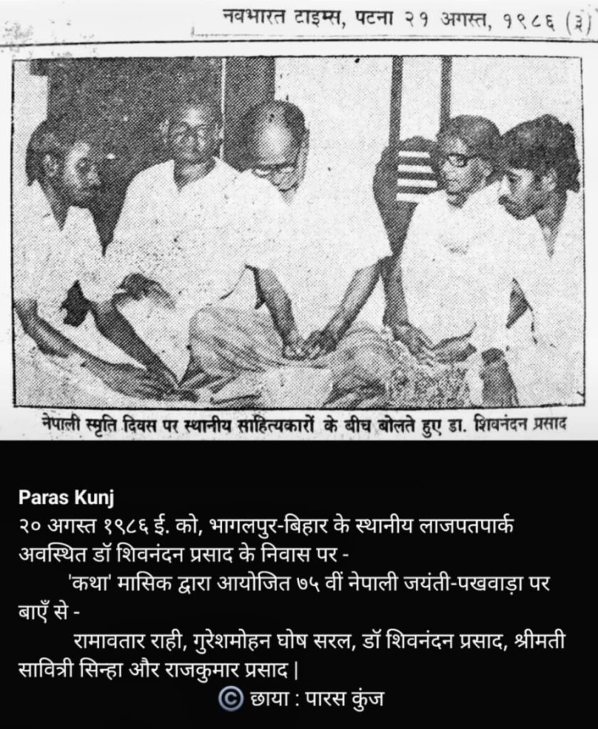 कार्यक्रम की अध्यक्षता करते हुए मारवाड़ी पाठशाला के प्राचार्य डॉ. मिथिलेश कुमार ने कहा कि राष्ट्रकवि गोपाल सिंह नेपाली का जन्म ११ अगस्त १९११ को पश्चिम चम्पारण के बेतिया में हुआ था। वे हिंदी साहित्य के महानायक थे जिन्होंने अपनी कविताओं के माध्यम से देशभक्ति और समाज सुधार का संदेश दिया। १७ अप्रैल १९६३ को भागलपुर आते समय ट्रेन में उनकी आकस्मिक मृत्यु हो गई थी। उनके पार्थिव शरीर को लगभग बीस घंटे तक इसी नेपाली सभागार में अंतिम दर्शनार्थ रखा गया था, जिसके बाद अगले दिन बरारी श्मशान घाट पर उनका अंतिम संस्कार किया गया था।