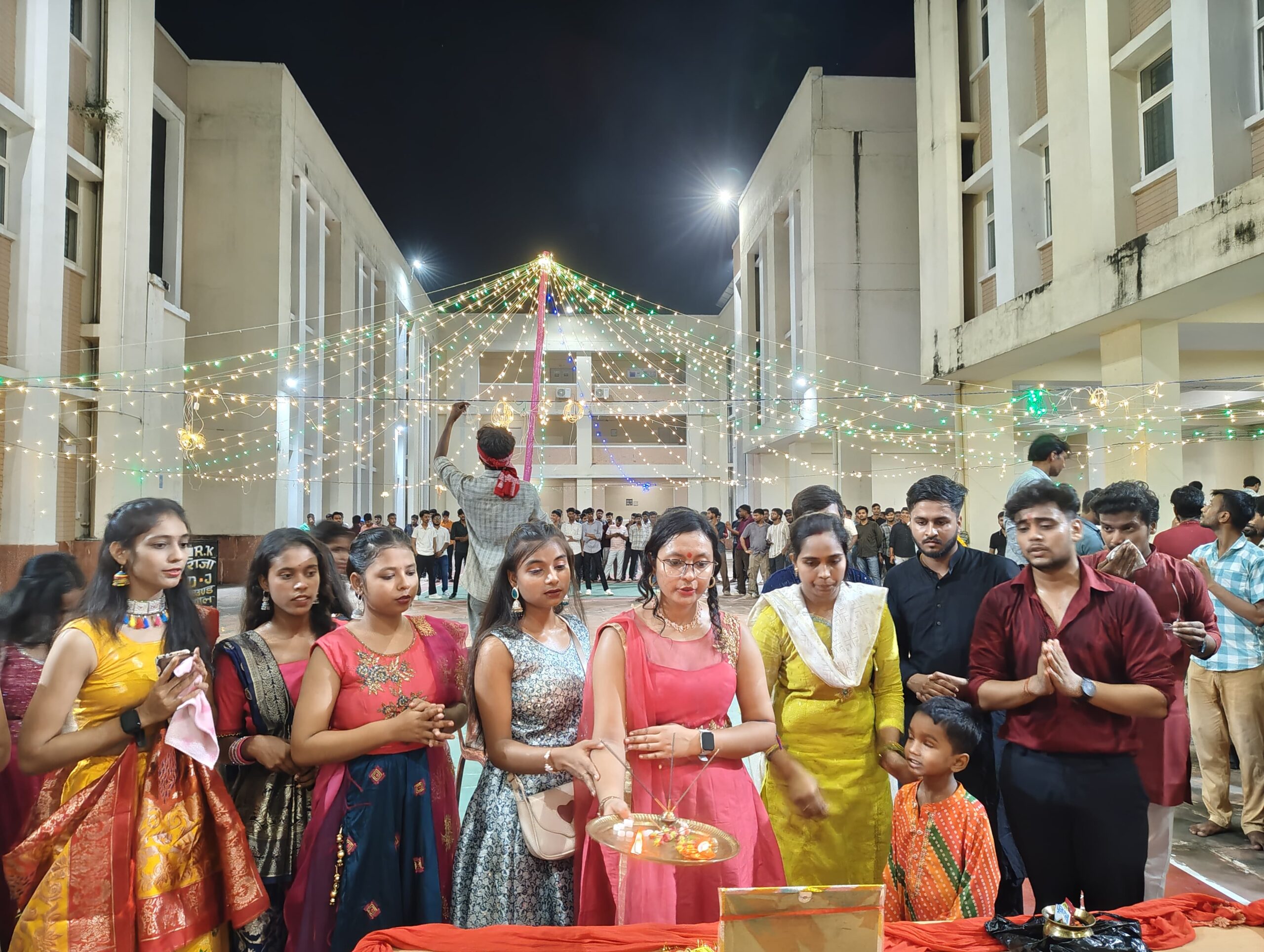 कार्यक्रम की शुरुआत देवी पूजा और दीप प्रज्वलन से हुई। इसके बाद पारंपरिक वेशभूषा में विद्यार्थियों ने समूह नृत्य कर उपस्थित दर्शकों को मंत्रमुग्ध कर दिया। पूरे कार्यक्रम के दौरान कॉलेज परिसर भक्तिमय और सांस्कृतिक रंग में डूबा रहा।