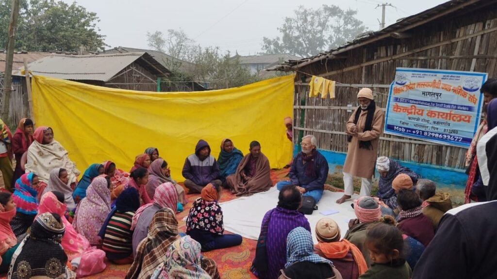 बैठक में स्थानीय मछुआ सुखदेव सहनी ने बताया कि सिंचाई विभाग द्वारा एक सप्ताह के भीतर कॉलोनी की जमीन खाली करने का नोटिस दिया गया है, जिससे इस कड़ाके की ठंड में करीब सौ परिवारों के सामने बेघर होने का संकट खड़ा हो गया है।