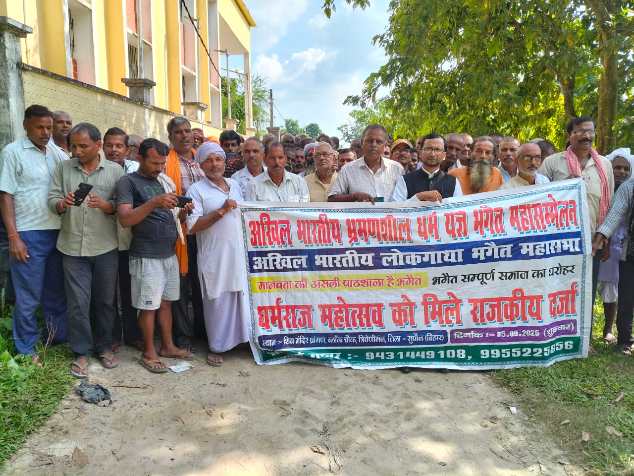 त्रिवेणीगंज अनुमंडल मुख्यालय स्थित शिव मंदिर प्रागण में शुक्रवार को धर्मराज महोत्सव को राजकीय दर्जा दिलाने के उद्देश्य से अखिल भारतीय लोकगाथा भगैत महासभा व अखिल भारतीय भ्रमणशील धर्म यज्ञ भगैत महासम्मेलन के तत्वावधान में मुख्य महंत जागेश्वर यादव की अध्यक्षता में महत्वपूर्ण बैठक आयोजित की गई। जिसमें सर्वसम्मति से धर्मराज महोत्सव को राजकीय महोत्सव की दर्जा दिलाने का प्रस्ताव लिया गया तथा धर्मराज महोत्सव का प्रस्ताव जिला प्रशासन सुपौल और बिहार सरकार को शिष्टमंडल के द्वारा समर्पित किया जाएगा। सभा की अध्यक्षता करते हुए मुख्य महंत जागेश्वर यादव ने कहा कि लोकगाथा भगैत भारतीय संस्कृति व सभ्यता का सबसे बड़ा दर्शन एवं सर्वोत्तम प्रहरी है। लोकगाथा भगैत समाज के किसी वर्ग, धर्म, जाति या व्यक्ति विशेष से संबंधित नहीं है बल्कि सम्पूर्ण समाज का धरोहर है। महासभा के संयोजक सह प्रवक्ता डॉ. अमन कुमार ने कहा कि संस्कृति ही किसी समाज और देश का प्राण हैं। लोकगाथा भगैत के सबसे बड़े महानायक बाबा धर्मराज हैं। भगैत मानवता की असली पाठशाला है । धर्मराज महोत्सव को राजकीय महोत्सव का दर्जा मिले इसके लिए तमाम धर्मराज भक्तों को सजग रहने की जरूरत है। डॉ. कुमार ने कहा कि भगैत सामाजिक शुद्धता एवं धर्मनिरपेक्षता के लिए वरदान साबित हुई है। यह धर्म, प्रेम, एकता एवं सद्भाव का प्रतीक हैं। समाज में जनचेतना व जनशिक्षा के दृष्टिकोण से भगैत सबसे बड़ा सामाजिक व धार्मिक अभियान है। भगैत कोशी और मिथिलांचल के जन-जन में समाया हुआ है। वार्षिक सभापति ब्रह्मदेव यादव ने कहा कि भगैत साम्प्रादायिक सौहार्द का सबसे बड़ा उदाहरण है। इसे सदा संरक्षित और संयोग कर रखने की आवश्यकता है। उप महंत सिकेन्द्र यादव ने कहा कि धर्मराज का असली अर्थ धर्म को पालन करने वाला होता है। धर्मराज की कथा पर अमल करने के बाद व्यक्ति में मानवता का गुण कूट-कूट कर भर जाता है। आचार्य रामजी दास व मासिक सभापति शत्रुध्न यादव ने कहा कि भावी पीढ़ी को बाबा धर्मराज के विचारों से अवगत कराने के साथ-साथ धर्मराज भक्तों के सम्मान में बाबा धर्मराज महोत्सव का आयोजन होना नितांत आवश्यक है। महत्वपूर्ण बैठक में महात्मा गजेन्द्र यादव , चंदन यादव,संतोष कुमार, कुलानंद यादव, सत्यनारायण यादव, भागवत यादव, चंद्र किशोर ठाकुर,अशोक यादव, बिरेंद्र यादव, शंभू मेहता, अजीत कुमार , मनीष कुमार आदि उपस्थित थे।