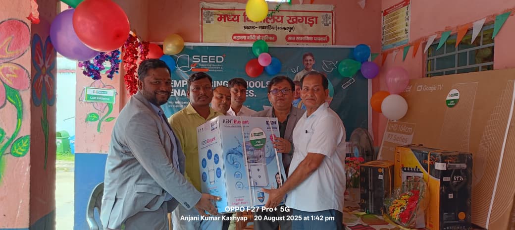 आईडीबीआई बैंक, नवगछिया शाखा ने कॉर्पोरेट सोशल रिस्पॉन्सिबिलिटी (CSR) के तहत शिक्षा के क्षेत्र में सराहनीय पहल करते हुए सरकारी विद्यालयों को आधुनिक सुविधाएँ उपलब्ध कराई. इस अवसर पर नवगछिया प्रखंड के खगड़ा पंचायत अंतर्गत मध्य विद्यालय, खगड़ा को 65 इंच का स्मार्ट टीवी, केंट आरओ वाटर फिल्टर और इन्वर्टर-बैटरी प्रदान की गई. वहीं इंटर स्तरीय विद्यालय, खरीक को पाँच पंखे, आरओ और इन्वर्टर-बैटरी सौंपे गए.