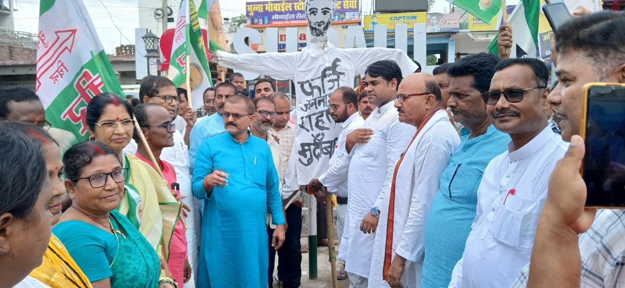 एसआईआर को लेकर भ्रम फैलाने निकले कांग्रेस नेता सांसद राहुल गांधी ने खुद को स्वघोषित तौर पर जननायक बताने के विरोध में गुरुवार को जदयू कार्यकर्ताओं ने शहर के लोहियानगर चौक पर राहुल गांधी का पुतला दहन किया। जदयू अतिपिछड़ा प्रकोष्ठ के जिलाध्यक्ष किशन मंडल व उपाध्यक्ष गगन ठाकुर के नेतृत्व में सैकड़ों कार्यकर्ताओं ने राहुल गांधी मुर्दाबाद का नारा लगाते हुए पुतला दहन किया। मौके पर पिपरा विधायक रामविलास कामत ने कहा कि देश में विभिन्न क्षेत्रों में बेहतर काम करने वाले लोगों को उपाधि देने की परंपरा रही है। लेकिन, यहां राहुल गांधी ने अपने आपको खुद से ही जननायक बता दिया है। ये कैसा काम किये हैं, जिनको जननायक की उपाधी मिलेगी। जदयू जिलाध्यक्ष राजेंद्र प्रसाद यादव ने कहा कि पिछड़ों के विकास में अहम भूमिका निभाने वाले नेता कर्पूरी ठाकुर जी के निधन के उपरांत आम लोगों ने ही उन्हें जननायक की उपाधी दी।