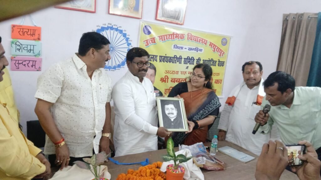 खगड़िया । नगर परिषद क्षेत्र अंतर्गत उच्च माध्यमिक विद्यालय मथुरापुर में नव-निर्मित विद्यालय भवन का विधिवत उद्घाटन सदर विधायक बबलू कुमार मंडल ने फीता काटकर एवं शिलापट्ट का अनावरण कर किया। इस अवसर पर आयोजित छात्र प्रतिभा सम्मान समारोह में मेधावी छात्रों को सम्मानित भी किया गया। कार्यक्रम में विधायक के साथ विशिष्ट अतिथि के रूप में पूर्व मुखिया सह जदयू के वरिष्ठ नेता अशोक सिंह तथा जदयू जिला प्रवक्ता आचार्य राकेश पासवान शास्त्री उपस्थित रहे। इधर कार्यक्रम में आने वाले आगंतुकों का छात्राओं द्वारा तिलक, आरती एवं पुष्प वर्षा कर भव्य स्वागत किया गय।, वहीं विद्यालय परिवार ने उनका फूल-माला, शॉल एवं पौधा भेंट कर अभिनंदन किया। गुरुवार को आयोजीत इस समारोह की अध्यक्षता विद्यालय की प्रधानाध्यापिका अनुराधा कुमारी ने की। जबकि संचालन शिक्षक अमर कुमार सुधांशु द्वारा किया गया। कार्यक्रम की शुरुआत कक्षा दसवीं की छात्रा सिमरन कुमारी के स्वागत गीत से हुई। अपने संबोधन में विधायक बबलू मंडल ने मैट्रिक परीक्षा में उत्कृष्ट प्रदर्शन करने वाले छात्र-छात्राओं को बधाई देते हुए कहा कि नया विद्यालय भवन छात्रों के शैक्षणिक वातावरण को और अधिक बेहतर बनाएगा। उन्होंने आश्वासन दिया कि विद्यालय में और भी आधारभूत सुविधाओं के विकास हेतु प्रयास जारी रहेंगे। उन्होंने छात्रों को गुणवत्तापूर्ण शिक्षा अध्ययन के साथ मेहनत से पढ़ाई करने की प्रेरणा देते हुए कहा कि सफलता का कोई शॉर्टकट नहीं होता। मेहनत करने वाले कभी निराश नहीं होते। वे एक न एक दिन अपने मंजील जरुर पाते हैं। उन्होंने यह भी कहा कि सम्राट चौधरी के नेतृत्व में तथा नीतीश कुमार द्वारा स्थापित विकास की परंपरा को आगे बढ़ाते हुए राज्य में शिक्षा सहित सभी क्षेत्रों में प्रगति होगी। जिससे खगड़िया के विकास की संभावनाएं और प्रबल हो गई है। गौरतलब है कि कार्यक्रम में स्वागत भाषण वरीय शिक्षक जैनेन्द्र कुमार ने दिया।