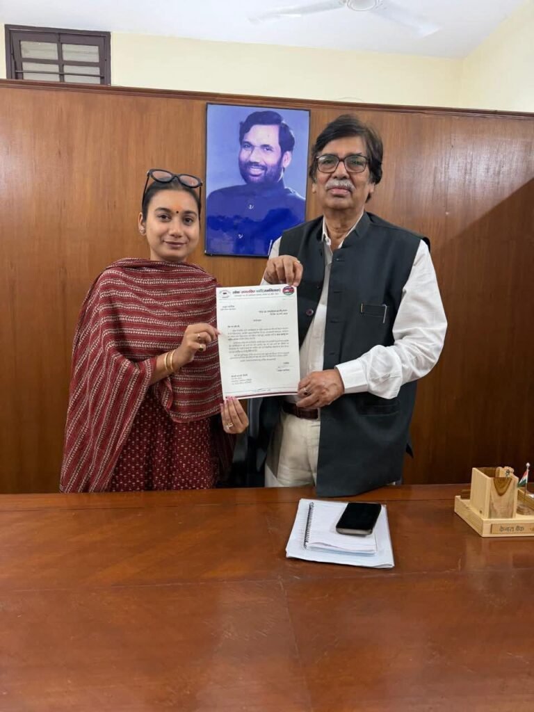 लोक जनशक्ति पार्टी (रामविलास) ने अपनी सांगठनिक मजबूती और युवा संवाद को धार देने के लिए एक बड़ा निर्णय लिया है। समस्तीपुर से सांसद श्रीमती शांभवी चौधरी को पार्टी के छात्र प्रकोष्ठ (Student Wing) का राष्ट्रीय अध्यक्ष मनोनीत किया गया है।