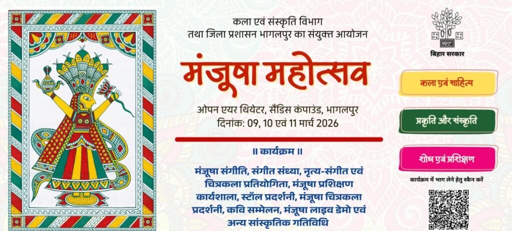 कला एवं संस्कृति विभाग, बिहार सरकार तथा जिला प्रशासन, भागलपुर के संयुक्त तत्वावधान में आगामी 9, 10 एवं 11 मार्च 2026 को मंजूषा महोत्सव का आयोजन किया जाएगा। यह महोत्सव शहर के ओपन एयर थिएटर, सैंडिस कंपाउंड में आयोजित होगा, जिसमें अंग क्षेत्र की समृद्ध सांस्कृतिक परंपरा और लोक कला मंजूषा कला को व्यापक स्तर पर प्रस्तुत किया जाएगा।