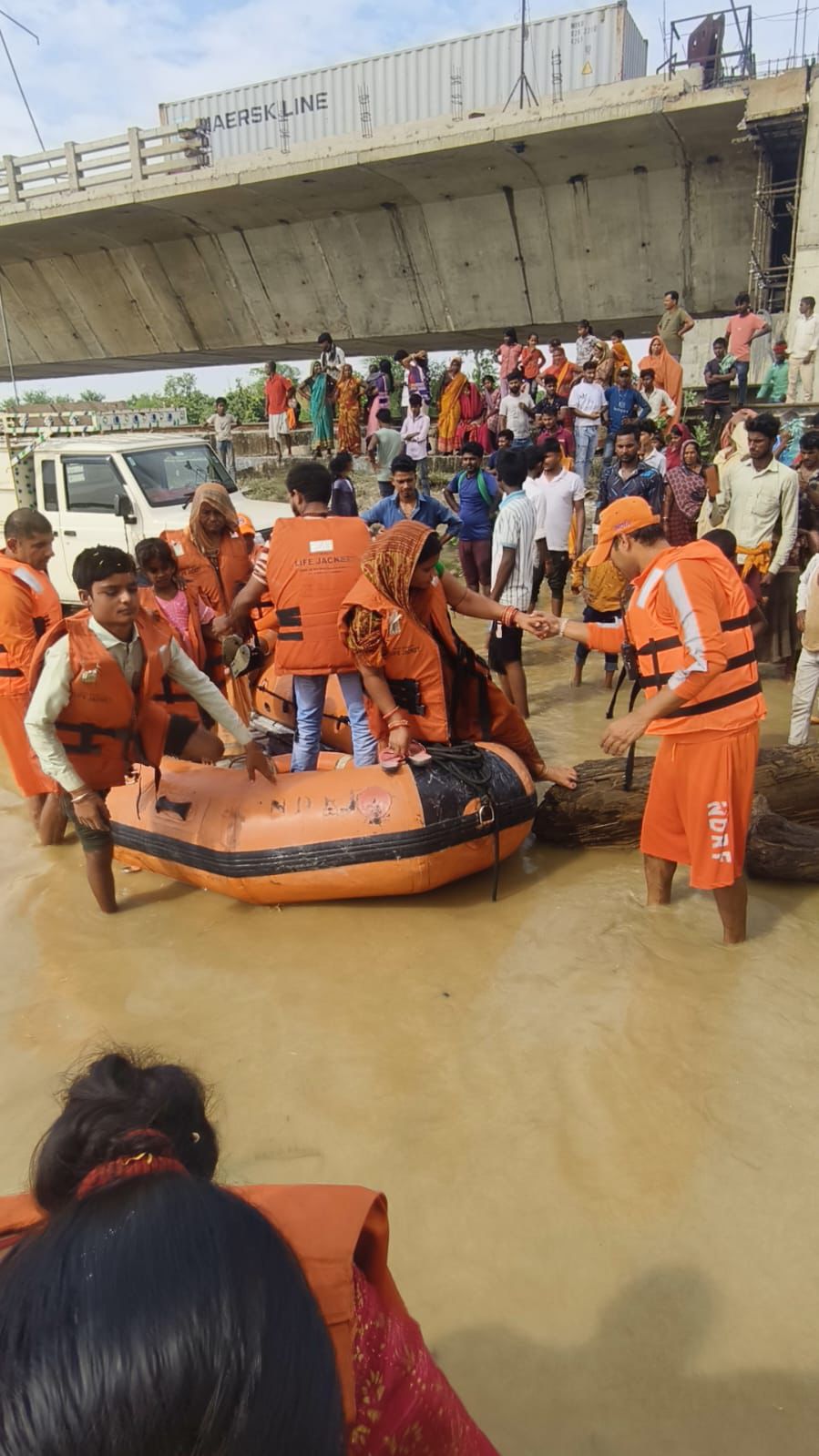 कोसी नदी के अंदर फंसे लोगों को बाहर निकालने के लिए एनडीआरएफ की टीम ने चलाया रेस्क्यू ऑपरेशन