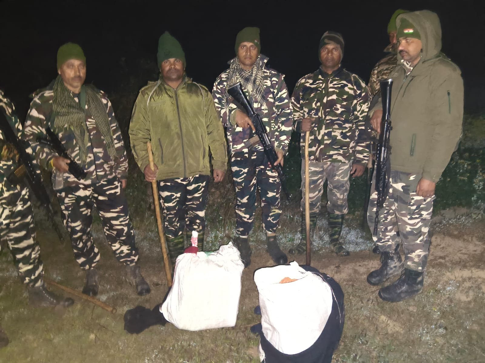 कुछ समय पश्चात सुरक्षा दल ने देखा कि दो व्यक्ति अपने सिर पर बोरी में सामान लेकर छुपावदार रास्ते से नेपाल से भारत की ओर नदी मार्ग के माध्यम से प्रवेश कर रहे थे। सुरक्षा दल को देखते ही दोनों संदिग्ध व्यक्ति बोरी को मौके पर छोड़कर नेपाल की ओर फरार हो गए।