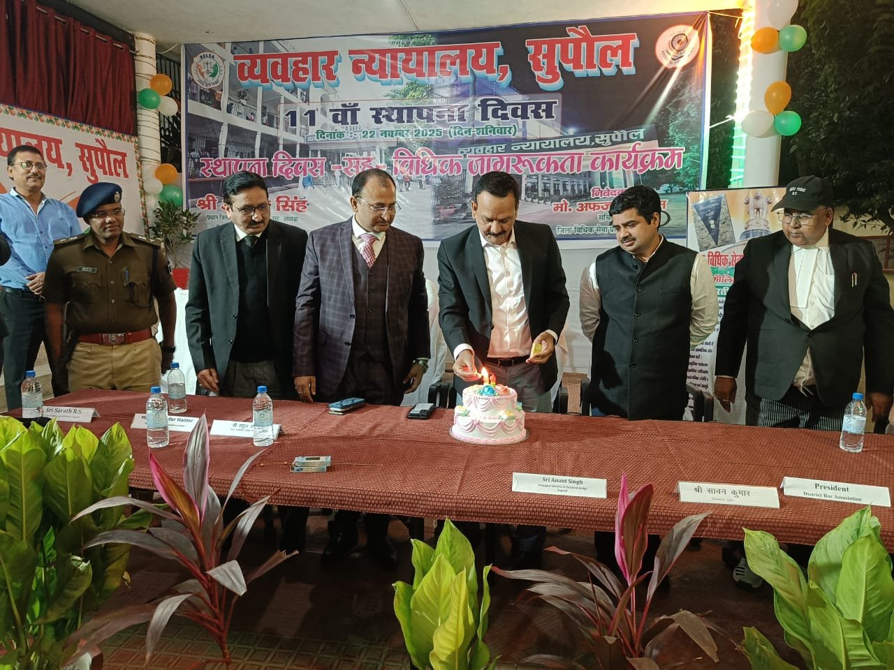 सुपौल व्यवहार न्याय मंडल का ग्यारह वां स्थापना दिवस शनिवार को गरिमामय एवं उत्साहपूर्ण वातावरण में मनाया गया। कार्यक्रम का शुभारंभ दीप प्रज्वलन एवं राष्ट्रीय गीत के साथ किया गया।