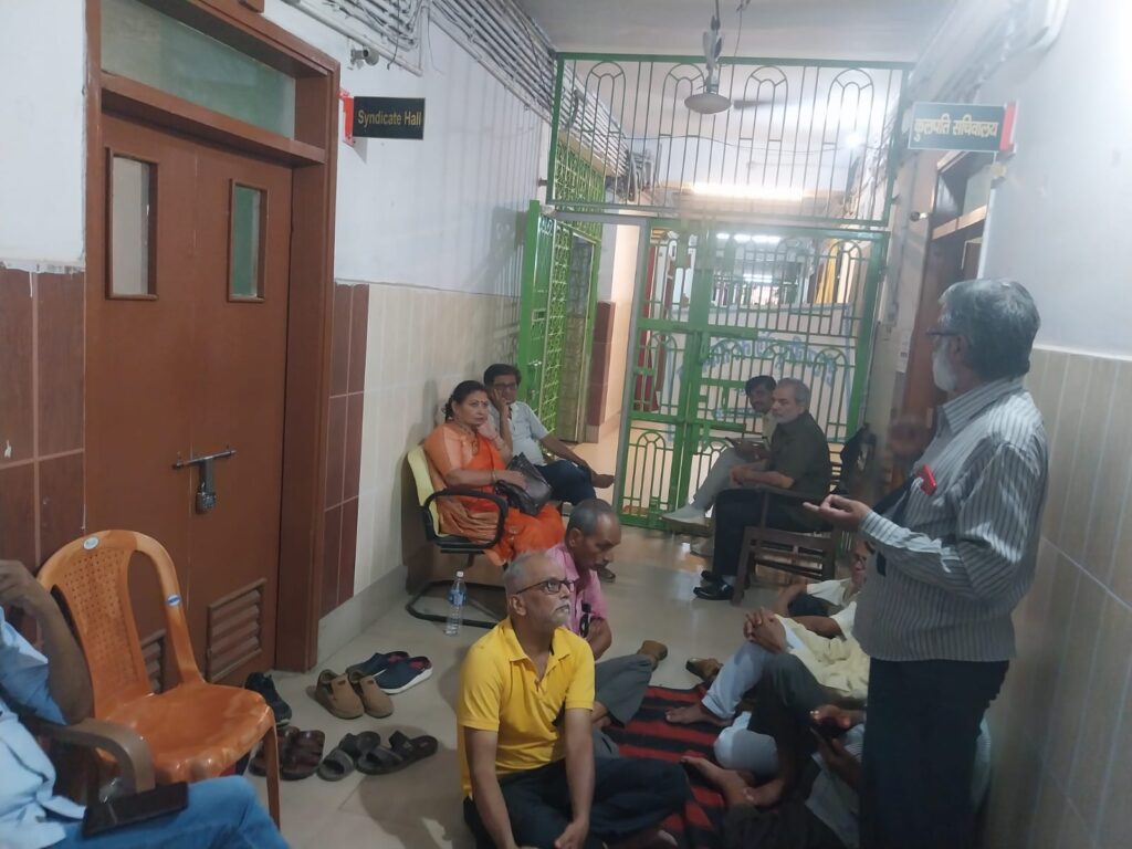 पूरे तीन साल तक TMBU के कुलपति प्रो. जवाहर लाल द्वारा पेंशनरों की अनदेखी और समझौते की अवहेलना के विरोध में आक्रोशित पेंशनरों ने गुरुवार को कुलपति के बंद पड़े कार्यालय के सामने काला बिल्ला लगाकर धरना प्रदर्शन किया।