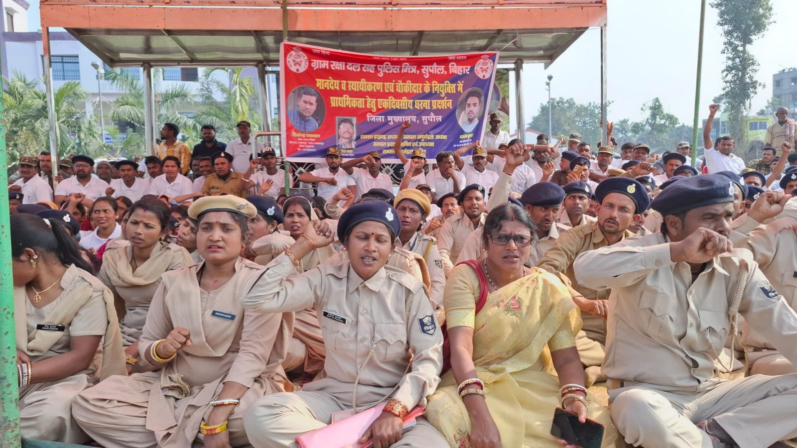 मानदेय में बढ़ोतरी, सेवा के स्थायीकरण और नियुक्ति में प्राथमिकता की मांग को लेकर ग्राम रक्षा दल सह पुलिस मित्रों ने मंगलवार को सुपौल जिला मुख्यालय स्थित डिग्री कॉलेज चौक पर एकदिवसीय धरना-प्रदर्शन किया। इस धरना का नेतृत्व जिला अध्यक्ष बजरंग कुमार ने किया। धरना स्थल पर बड़ी संख्या में ग्राम रक्षा दल सह पुलिस मित्र मौजूद रहे और अपनी मांगों के समर्थन में नारेबाजी की।